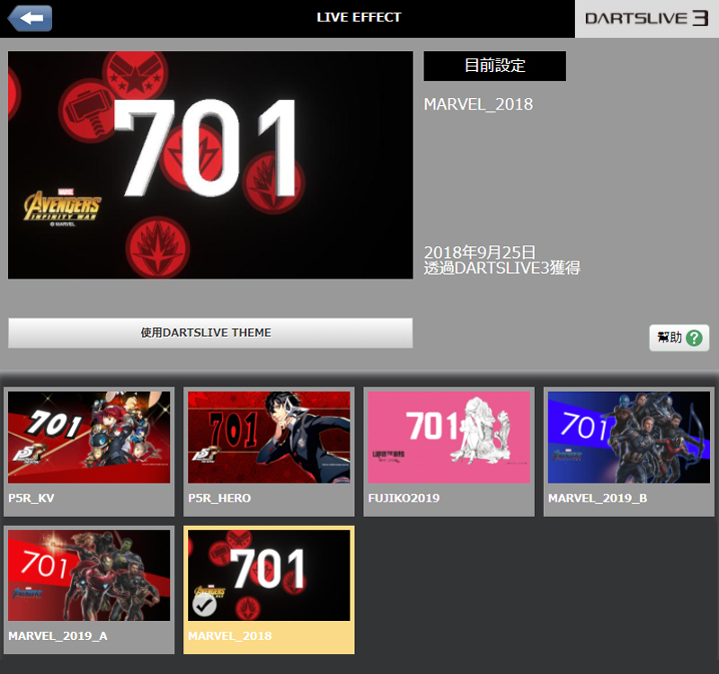 This card includes bunch of discontinued DARTSLIVE3 themes(live effects) & awards! (This card is not a brand-new card, we got themes & awards in a new card)